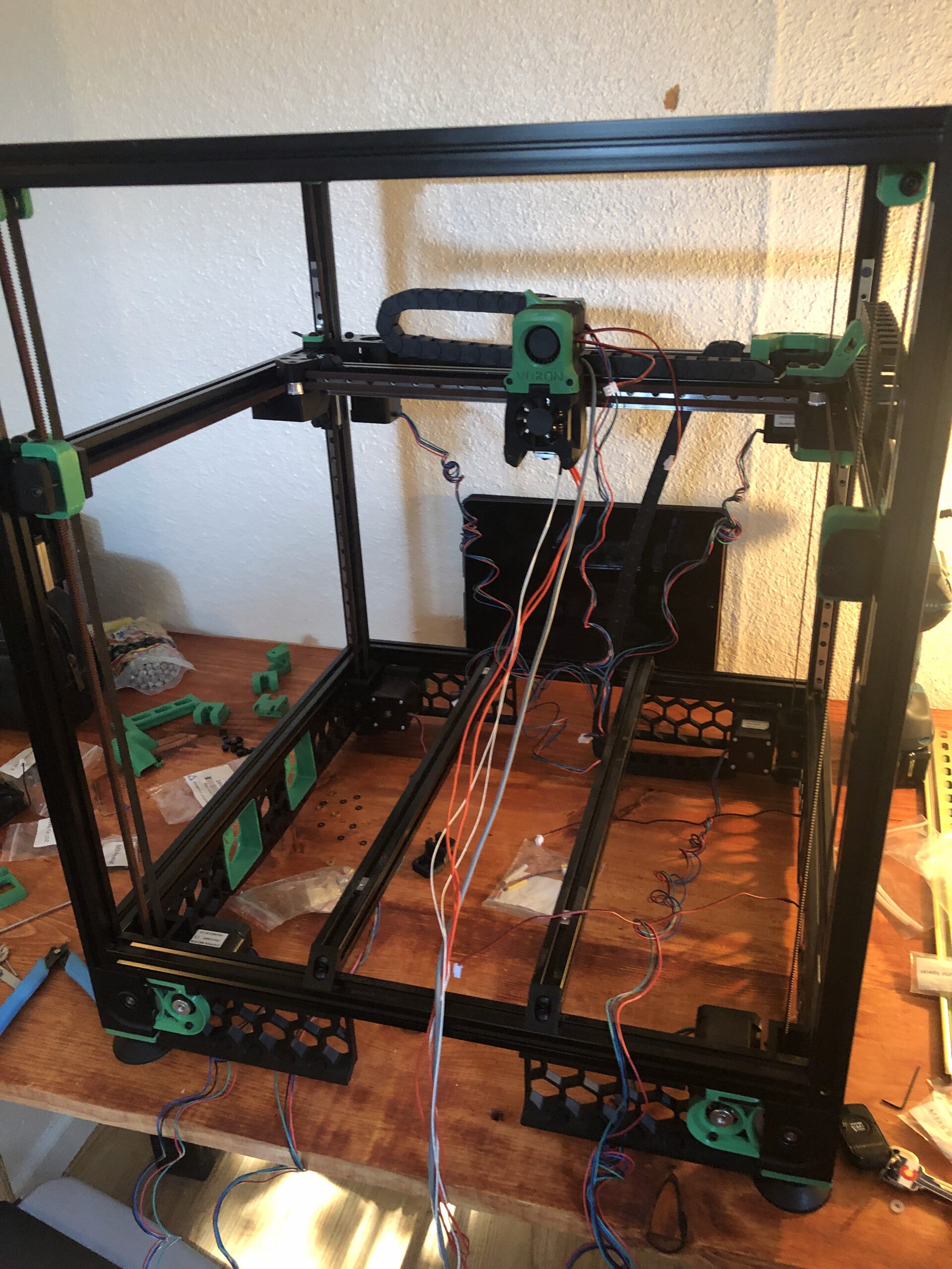 After wiring and firmware, this Voron was humming at 1000 mm/s, 20x faster than the stock Ender 3 (50 mm/s).
