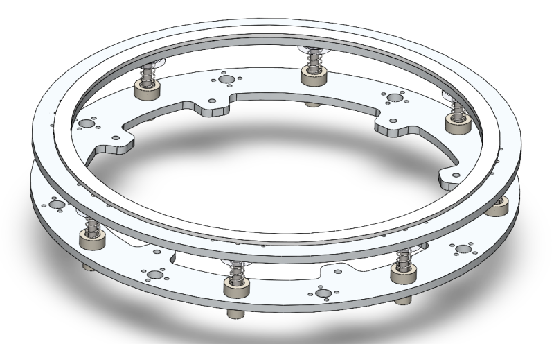 Delrin rollers were incorporated, allowing the rotating assembly to glide smoothly in the radial direction.